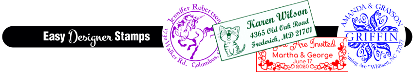 We also have a "Quick-Set" stamp option with limited typestyle choice and text only content. These are good for simple address stamps and