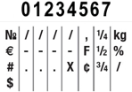 Size 2 3/16" characters, 8 Bands (Each band contains numbers 0 through 9 plus useful currency and other characters)